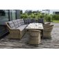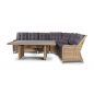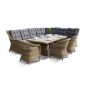 Угловая модульная лаунж-зона с обеденным столом и тремя стульями. В состав входят: - модульный диван (правый модуль - 1150х900х990 мм, левый модуль - 1150х900х990 мм, угловой модуль - 1630х900х990 мм, центральный модуль - 900х900х990 мм) - плетеный обеденный стол (1800х1000х680 мм) - кресло 3 шт. - (570×680×810 мм)