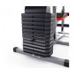 Комплекс не требует дополнительных снарядов - он полностью автономный. В комплект входит весовой стек массой 60 кг: 11 пластин по 4,5 кг и верхняя пластина 5 кг. Ролики на подшипниках обеспечивают плавное движение. Стальной трос толщиной 4 мм в защитной оплетке так же гарантирует безопасность при выполнении упражнений.