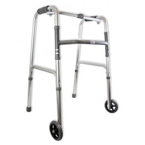 - на колесах. Имеют от двух до четырех колес. Четырехколесные модели называются роллатором, который может иметь и сиденье. Передвижение с помощью данной модели связано с минимальными усилиями;