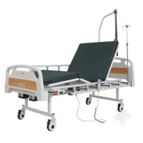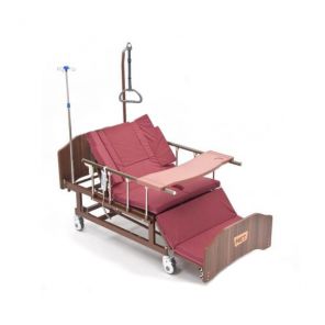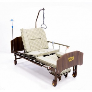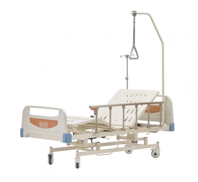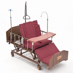 Медицинская кровать предназначена для больных, которым требуется длительный постельный режим. Может использоваться в стационарах медицинских учреждений, гериатрических пансионатах, в домашних условиях. Главное преимущество модели - использование электропривода. Благодаря ему регулировать наклон головной и ножной секции гораздо проще, для этого не требуется физических усилий, пациент сможет сделать это сам с помощью специального пульта. Наличие колес позволит использовать кровать вместо каталки. Вместе с тем модель не оборудована туалетным устройством и механизмом для переворота больного. В комплект поставки входят также инфузионная стойка и штанга, с помощью которой пациент сможет подтянуться и сесть.