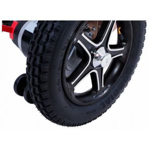 Тип подлокотников: откидные/съемные Тип подножек: фиксированные Ширина сиденья: 45 см Макс. скорость: 12 км/ч Запас хода: 35 км Мощность: 900 Вт Макс. нагрузка: 220 кг Материал рамы: сталь Тип колес: пневматические Цвет: красный Цвет рамы: серый