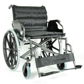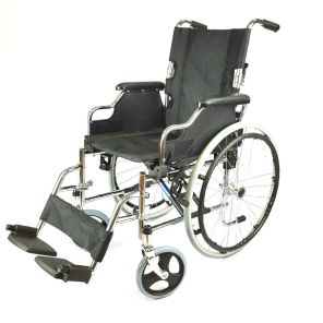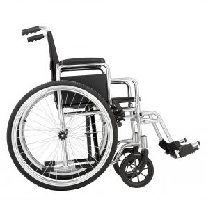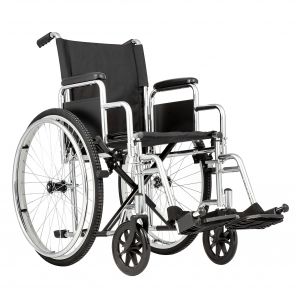 Тип подлокотников: фиксированные Тип подножек: откидные/съемные Ширина сиденья: 48 см Макс. нагрузка: 130 кг Материал рамы: сталь Тип колес: литые Ручки для толкания Цвет: черный Цвет рамы: хром