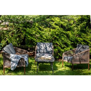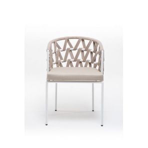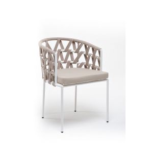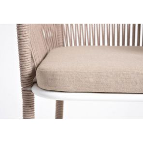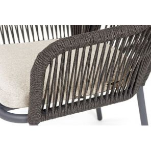 Стул 4SIS Лион плетеный из роупа, каркас алюминий темно-серый, роуп темно-серый круглый, ткань бежевая