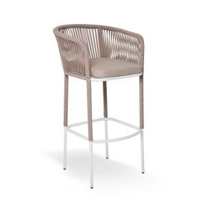 Стул барный 4SIS Марсель плетеный из роупа, каркас из стали белый муар