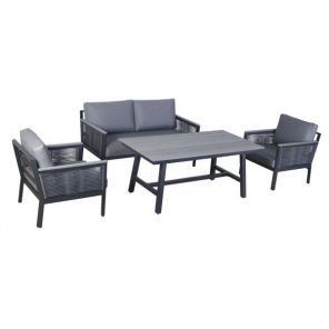 Лаунж-зона 4SIS Милан 5-местная плетеная, каркас алюминиевый серый, роуп темно-серый