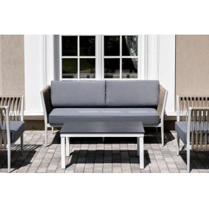 Диван модульный плетеный 4SIS Касабланка каркас алюминий, роуп серо-коричневый, ткань бежевая