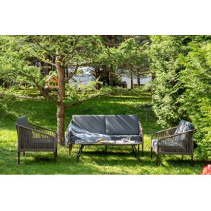 Диван 3-местный 4SIS Лугано плетеный из роупа, темно-серый