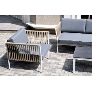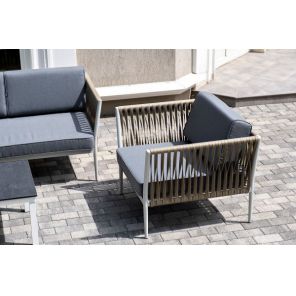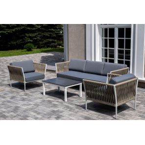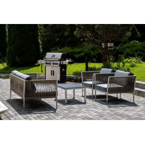 Лаунж-зона 4SIS Касабланка плетеная из роупа 5-местная, цвет серый Материал плетения: эластичные ленты из высокопрочных полиэфирных волокон (роуп)