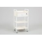 Тележка для косметологического кабинета ТК-1 имеет прочный стальной каркас, крепление для лампы-лупы, ящик, закрывающийся на ключ и две открытые полки.
