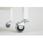 Полки ограждены рейлингами, предотвращающими падение предметов. Новые прорезиненные колесики круглой формы делают перемещение тележки легким и бесшумным.