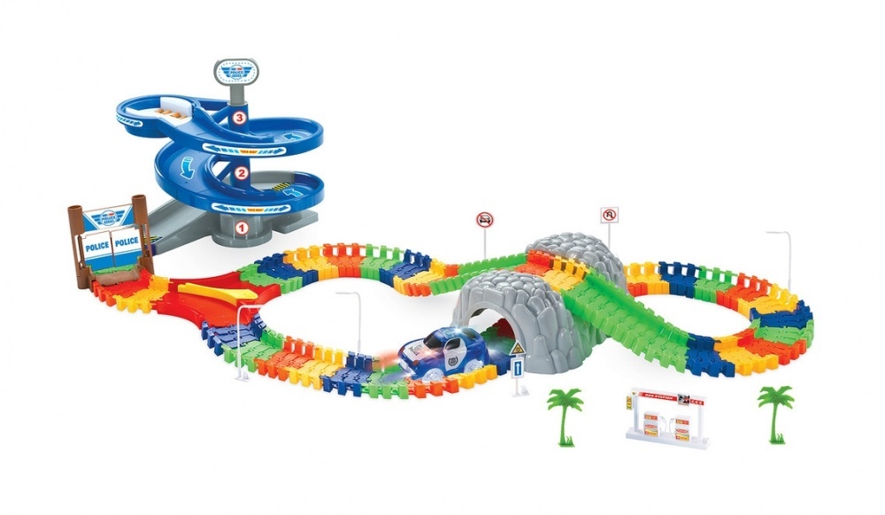 Игровой набор «Полиция» предназначен для малышей, которые обожают разыгрывать полицейские преследования, воображая себя смелым и отважным борцом с преступностью. Но прежде чем отправить полицейскую машинку в патруль необходимо собрать из гибких разноцветных деталей трек, дополнив его воротами, паркингом и тоннелем.