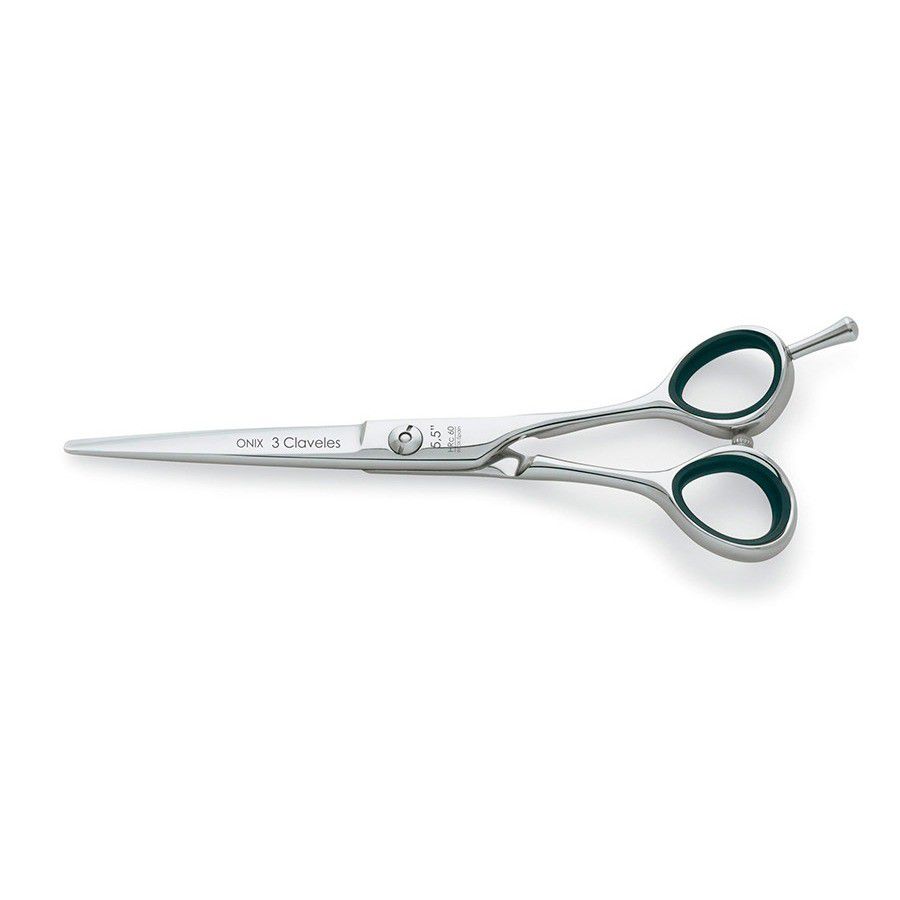 Ножницы Onix 12773 от испанского бренда 3Claveles изготовлены из нержавеющей стали методом горячей ковки. Острые как бритва режущие кромки позволяют делать идеальный слайсинг! Несмотря на классическую форму, кольца этих ножниц выполнены с эргономичными изгибами, что снимает нагрузку на руку мастера во время работы.