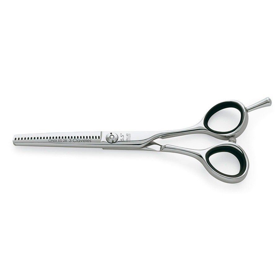Ножницы филировочные Onix ES 12775от испанского бренда 3Claveles изготовлены из нержавеющей стали методом горячей ковки. Острые как бритва режущие кромки, одна из которых филировочная с 28 зубцами, позволяют делать бережную и контролируемую филировку волос, придавать форму, структуру и объём на завершающем этапе стрижки.Несмотря на классическую форму, кольца этих ножниц выполнены с эргономичными изгибами, что снимает нагрузку на руку мастера во время работы.