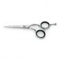 Невероятно удобные эргономичные ручки со съемным упором для мизинца обеспечат баланс во время работы с инструментом и не позволят руке мастера уставать в течение всего рабочего дня. Ножницы Toba 12776 от испанского бренда 3Claveles изготавливаются из качественной нержавеющей стали твёрдостью HRc60 по шкале Роквелла. Оснащены регулируемым винтом натяжения полотен, позволяющим настроить ножницы для любого типа волос.