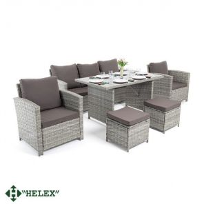 Плетение выполнено вручную искусственным ротангом, кресло укомплектовано подушками из 100% полиэстера, которые пропитаны специальным составом, обладающим влагоотталкивающим свойством.