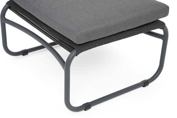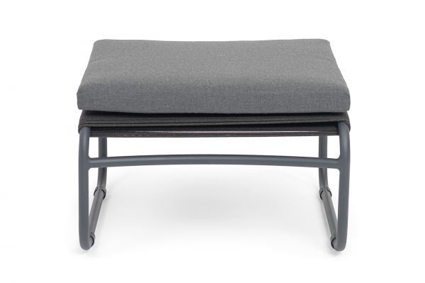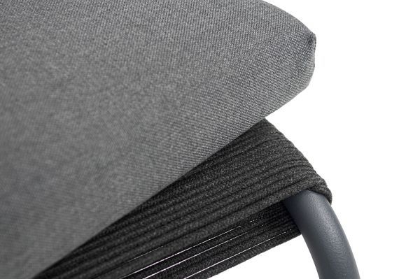 Алюминиевый каркас используется при изготовлении основы пуфа. Нижняя часть задекорирована эластичными синтетическими лентами, состоящими из высокопрочных полиэфирных волокон. Представлеа в темно-сером цвете.