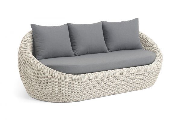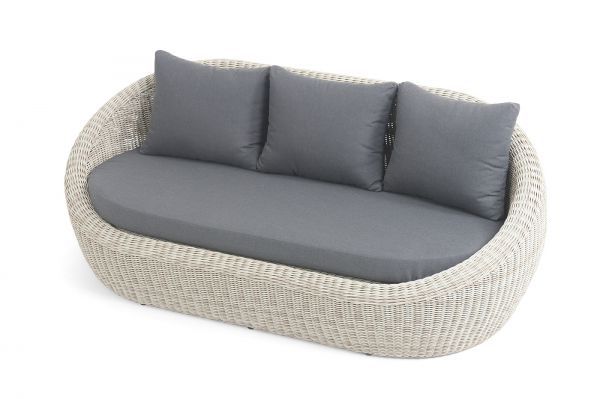 Трехместный диван дополняют мягкие подушки в сером цвете со съёмными чехлами. Тканевые изделия выполнены из прочного полиэстера плотностью 300гр/м2. Материал имеет влагоотталкивающую пропитку.
