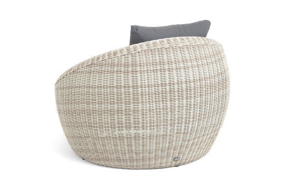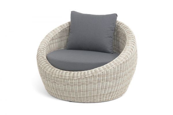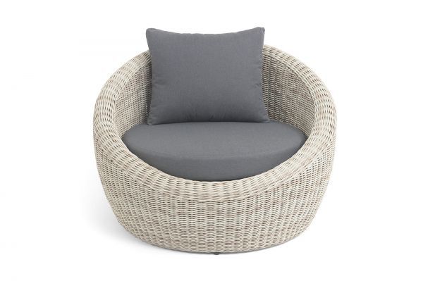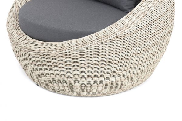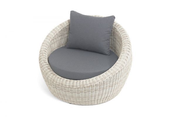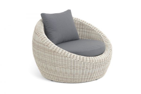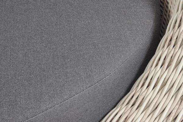 В комплекте с уличным ротанговым креслом идут мягкие подушки со съёмными чехлами серого оттенка. Они пошиты из полиэстера, который не боится повышенной влажности благодаря наличию влагоотталкивающей пропитки. Плотность ткани составляет 300гр/м2.