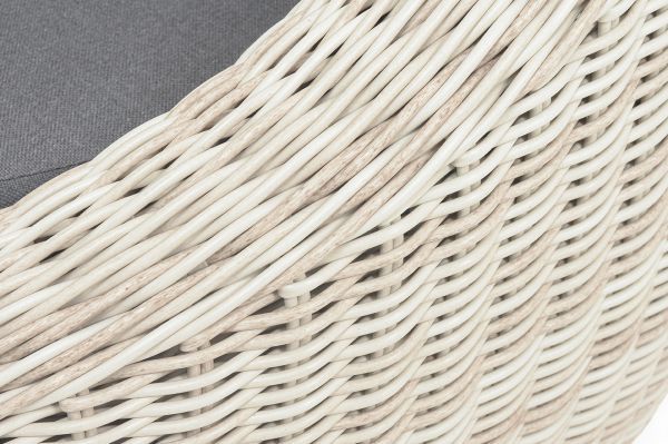 Надежность и износостойкость мебели гарантирует каркас, который сделан из качественного алюминия. Ее дополняет ручное плетение, при изготовлении которого используется искусственный ротанг. Представлена модель в бежевом цвете.