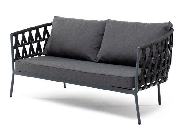 Диван 2-местный плетеный из роупа 4SIS «Диего» каркас алюминий темно-серый (RAL7024) муар