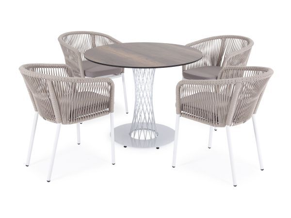 Обеденная группа 4SIS "Диего" на 4 персоны, круглый стол дуб, цвет бежевый