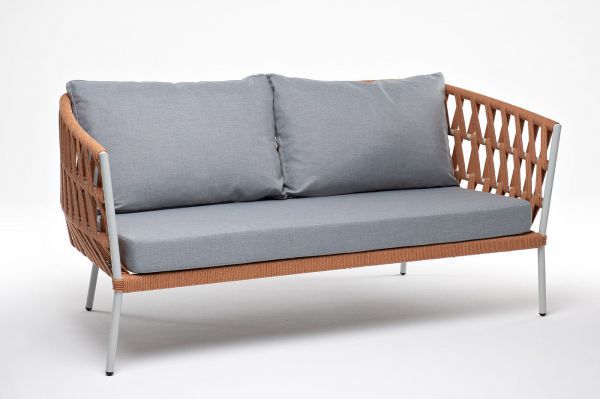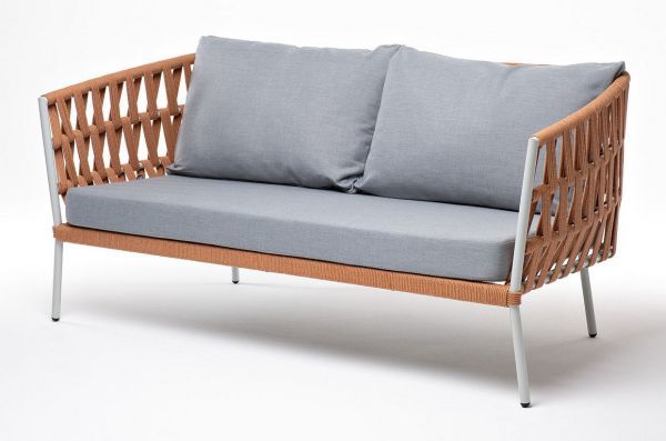 Диван 2-местный плетеный из роупа 4SIS «Диего» светло-серый