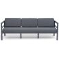 Трехместный диван «Эстелья». Каркас из алюминия, окрашенный в темно-серый (RAL7024) цвет, мягкие подушки на сидениях и спинках со съёмными чехлами цвета серый гранит.