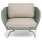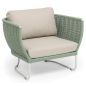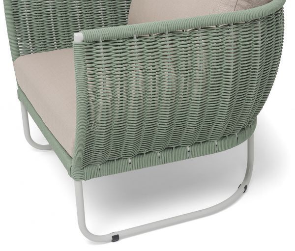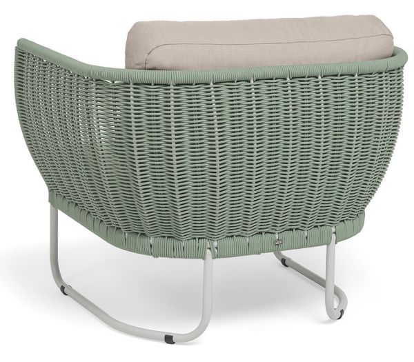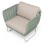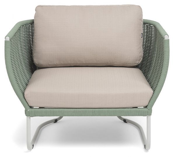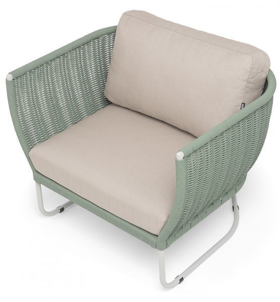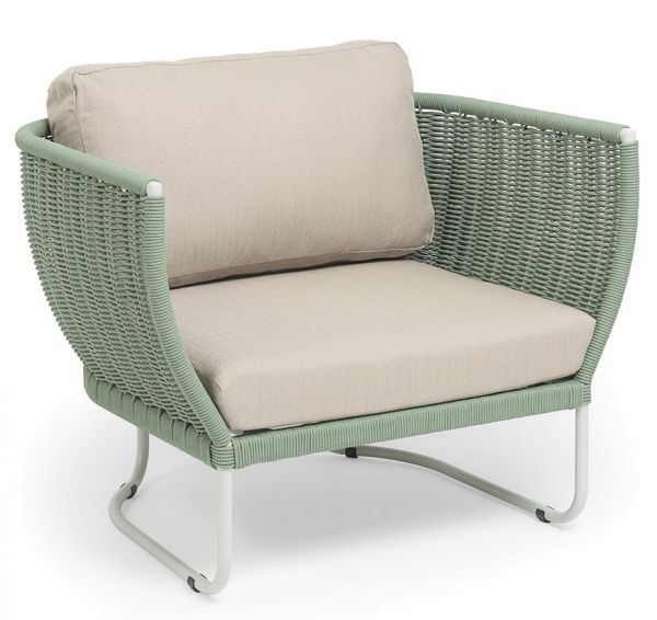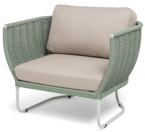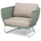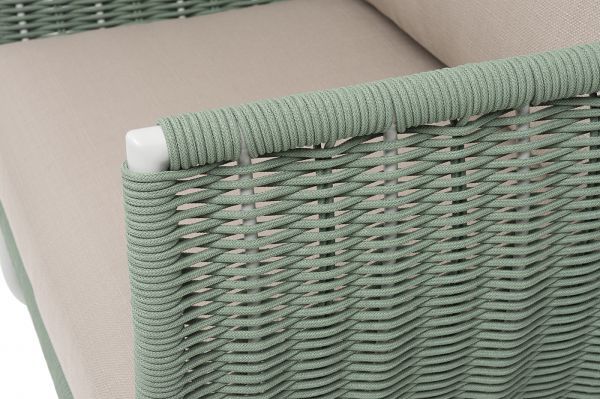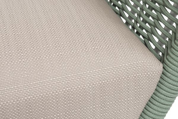 Плетеное кресло «Фиджи» с комплектом подушек — идеальное решение для кафе, ресторана или зоны отдыха на открытой веранде. Мягкие подушки добавляют уюта и делают пребывание в кресле по настоящему комфортным. Каркас выполнен из алюминия и окрашен порошковой краской в светло-серый (RAL7035) цвет. Плетение боковины каркаса вручную оплетены роупом — эластичными синтетическими лентами из высокопрочных полиэфирных волокон. Оплетка - круглый tex, что придает креслу изысканный и оригинальный внешний вид. В комплект входят подушки с плотным наполнителем и съемными чехлами. Чехлы изготовлены из материала Mossle бежевого цвета, обработаны влагоотталкивающей пропиткой. Тип ткани - рогожка.