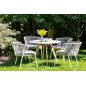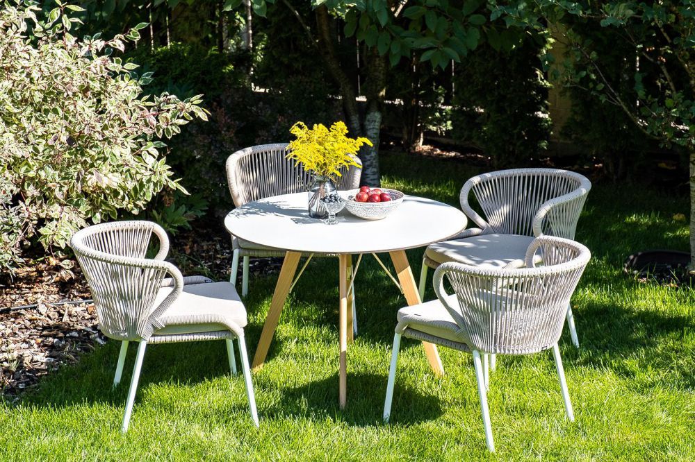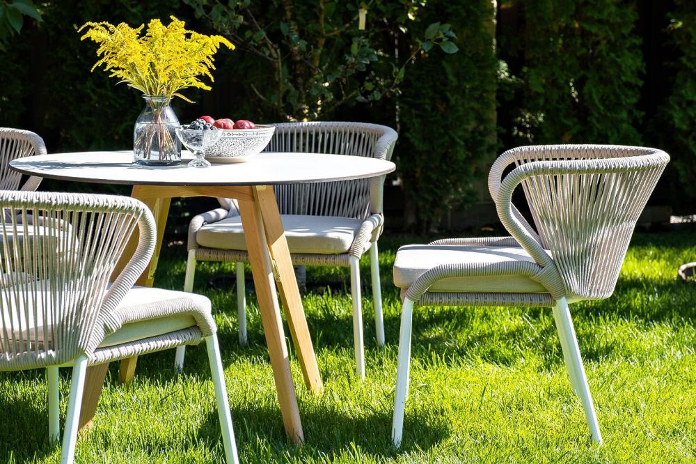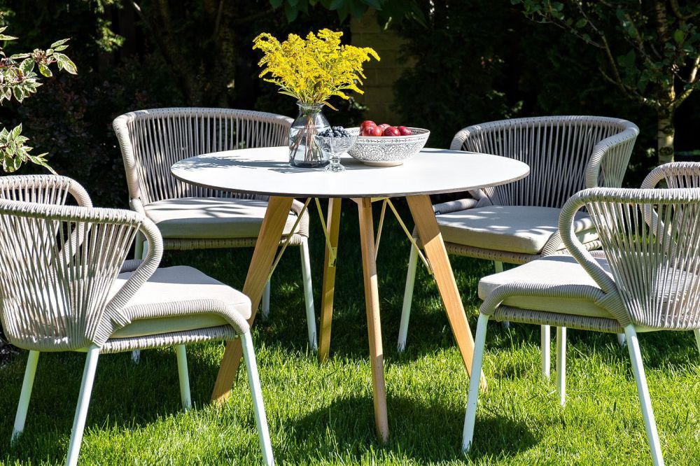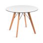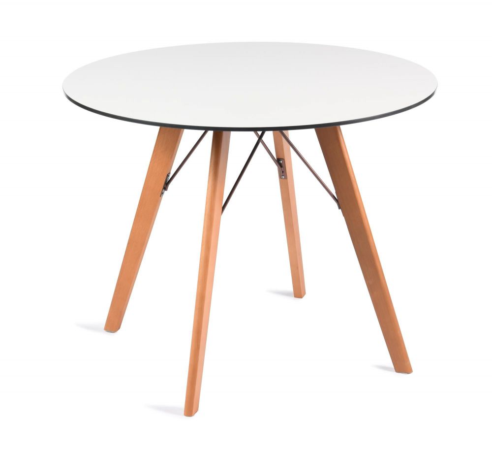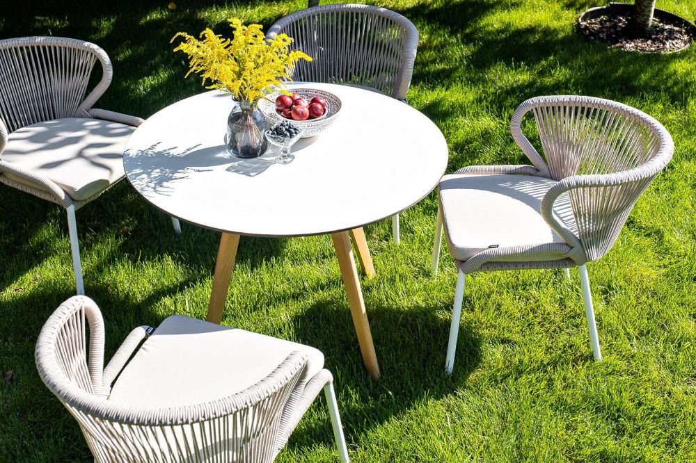 Столешница выполнена из высококачественного монолитного компакт-пластик HPL, толщиной 12 мм. Диаметр стола - 100 см. Цвет поверхности – молочный. Каркас (подстолье) изготовлен из натурального дерева. Стол устойчив к влаге, перепадам температур, ультрафиолетовым лучам.