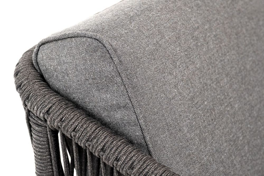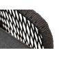 Каркас кресла оплетен синтетическими лентами, выполненных из полиэфирных волокон высокой прочности (роуп). Цвет плетения - темно-серый. Основание - натуральный дуб.