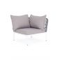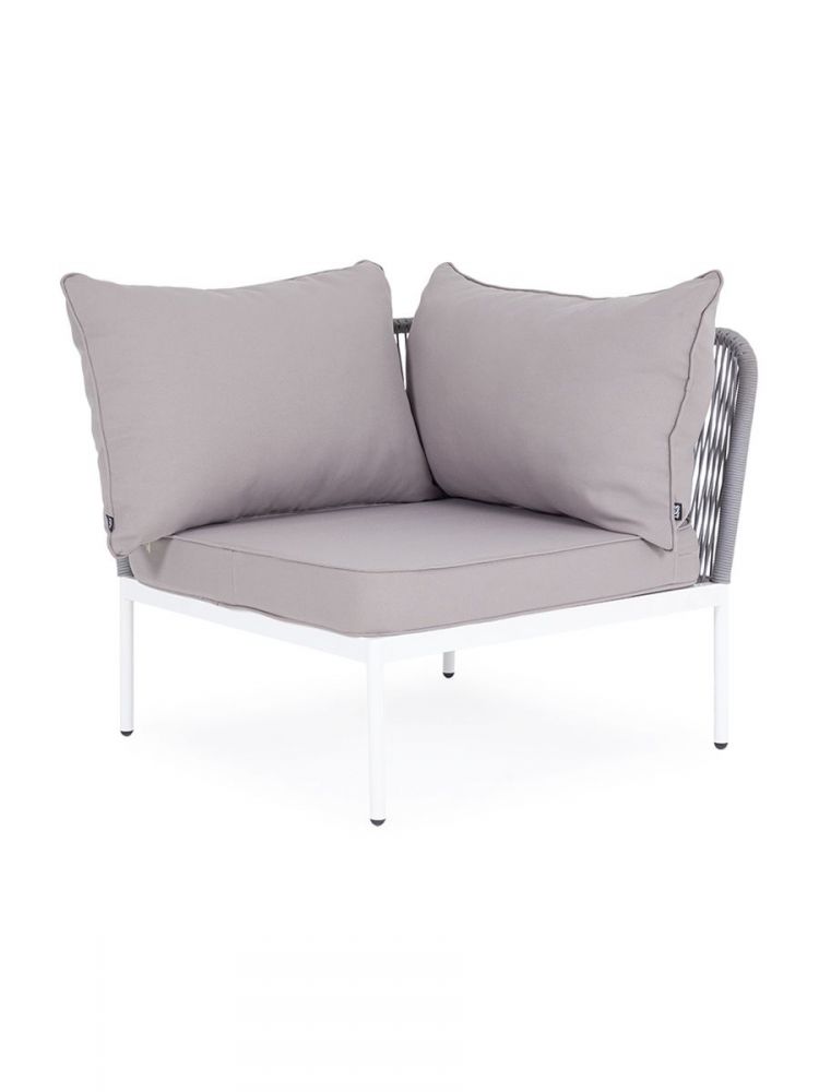 Плетеный модуль имеет алюминиевый каркас, окрашенный порошковой краской в белый цвет. Боковины каркаса вручную оплетены роупом - эластичными синтетическими лентами, изготовленными из высокопрочных полиэфирных волокон. Цвет оплетки - светло-серый.