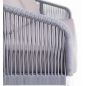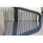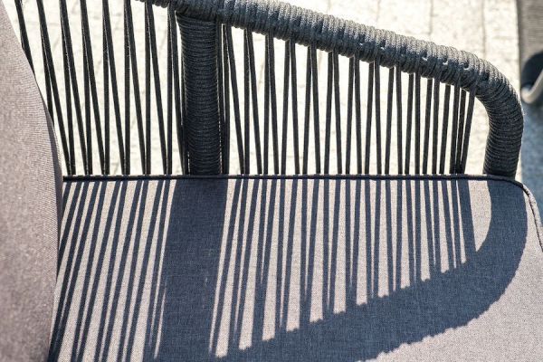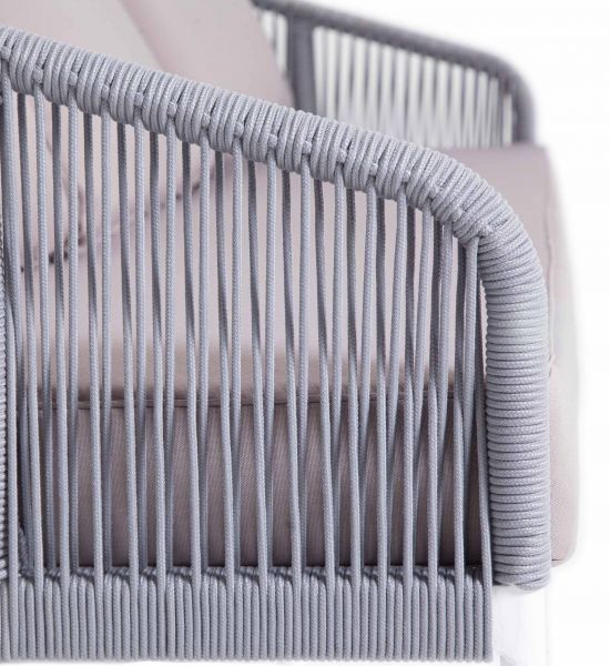 Каркас уличной мебели выполнен из износостойкого алюминия, окрашенного в белый цвет. Его дополняет ручная оплетка, изготовленная на основе эластичных синтетических лент из полиэфирных волокон высокой прочности.