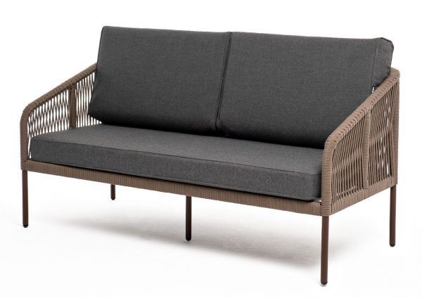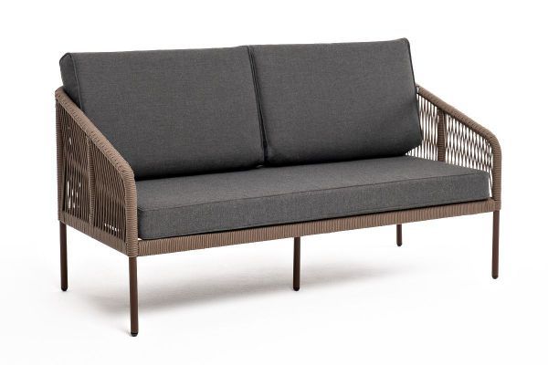 Диван 2-местный плетеный из роупа 4SIS «Канны» каркас алюминий коричневый (RAL8016) муар