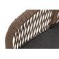 Диван имеет алюминиевый каркас коричневого (RAL8016) цвета, который обеспечивает прочность и надежность конструкции. Он вручную оплетен круглым роупом аналогичного коричневого цвета, что придает дивану элегантный и современный вид.