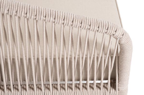 Боковины каркаса вручную оплетены роупом - эластичными синтетическими лентами, изготовленными из высокопрочных полиэфирных волокон. Цвет оплетки - бежевый. Основание дуб.