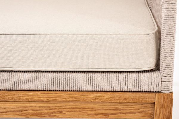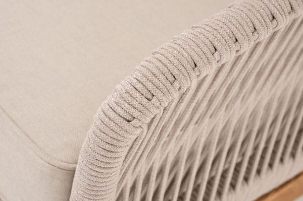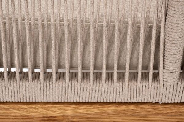 Боковины каркаса вручную оплетены роупом - эластичными синтетическими лентами, изготовленными из высокопрочных полиэфирных волокон. Цвет оплетки - бежевый. Основание дуб.