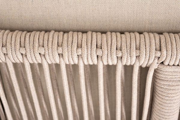 Боковины каркаса вручную оплетены роупом - эластичными синтетическими лентами, изготовленными из высокопрочных полиэфирных волокон. Цвет оплетки - бежевый. Основание дуб.