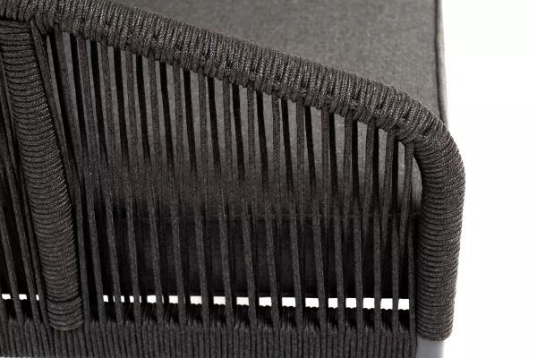Плетеное кресло «Канны» идеально подходит для комфортного отдыха в саду или на балконе. Прочный каркас из алюминия окрашен в насыщенный темно-серый (RAL7024) цвет порошковой износостойкой краской. Покрытие прочное, устойчивое к возникновению сколов и ржавчины. На боковинах - оплетка из синтетических лент, выполненных из полиэфирных волокон высокой прочности. Цвет плетения - темно-серый.