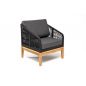 Каркас кресла оплетен синтетическими лентами, выполненных из полиэфирных волокон высокой прочности (роуп). Цвет плетения - темно-серый. Основание - натуральный дуб.