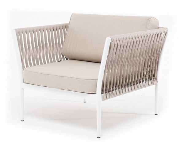 Кресло плетеное из роупа 4SIS «Касабланка» каркас алюминий белый, муар