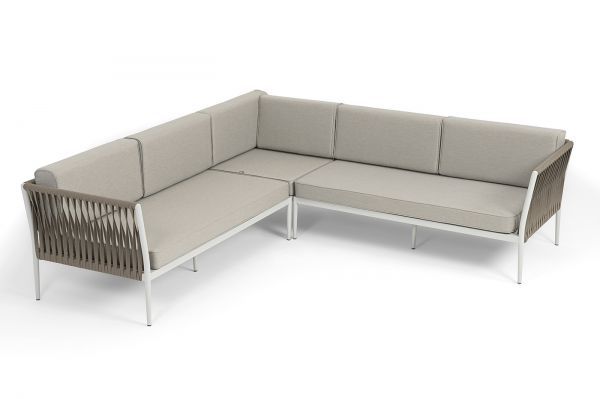 Диван модульный плетеный 4SIS Касабланка каркас алюминий, роуп серо-коричневый, ткань бежевая