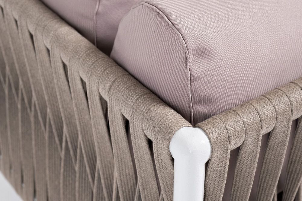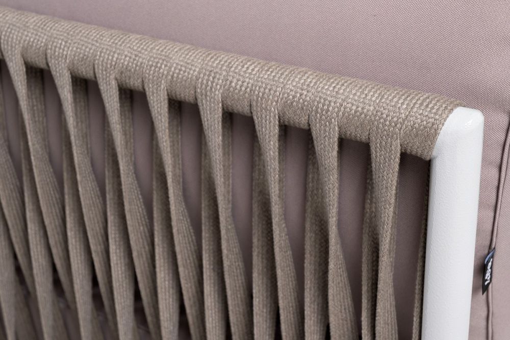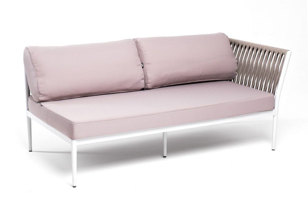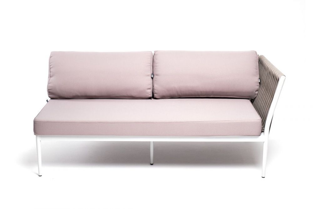 Модуль диванный левый входит в комплект трансформирующегося дивана "Касабланка". Изготовлен из качественного алюминиевого профиля, окрашенного порошковой краской в светло-серый (RAL7035) цвет. Каркас оплетен плоским роупом, шириной 23 мм, серо-коричневого цвета.