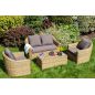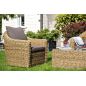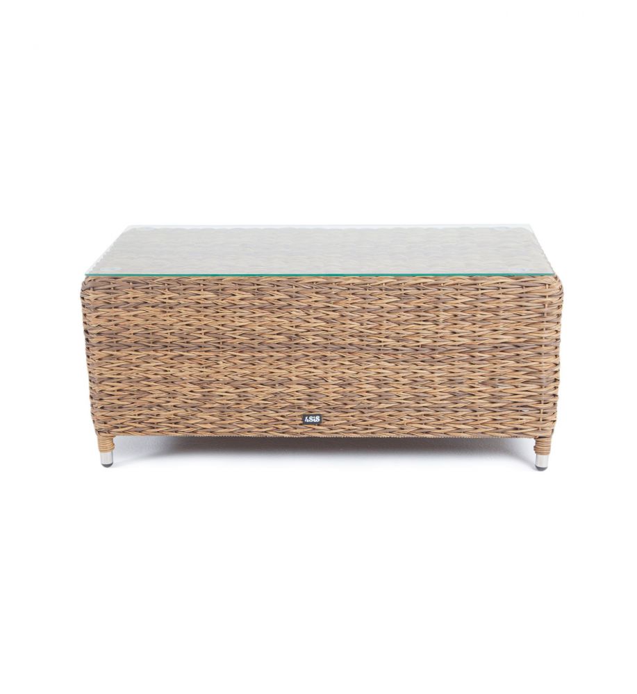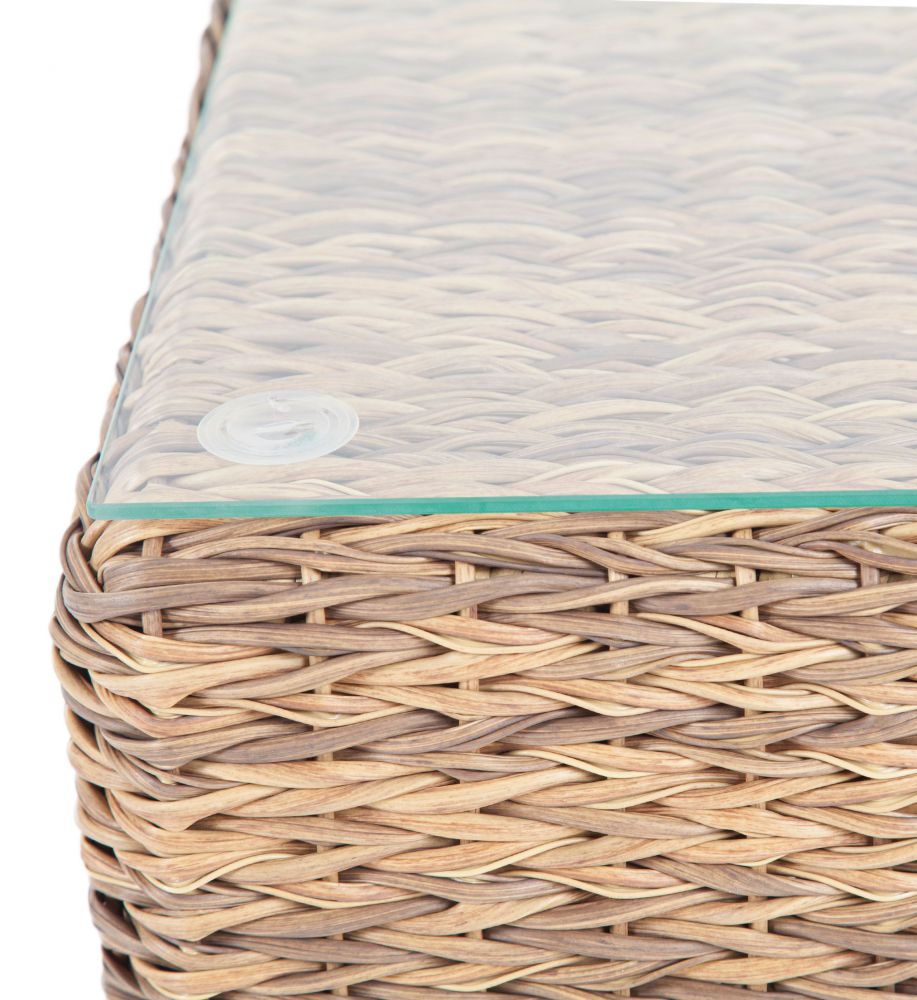 Журнальный столик из искусственного ротанга «Кон Панна» соломенного цвета, подходит для эксплуатации при различных погодных условиях. Вид плетения - "гиацинт".
