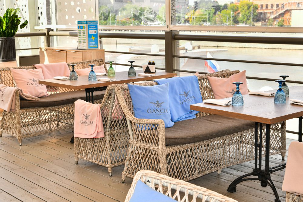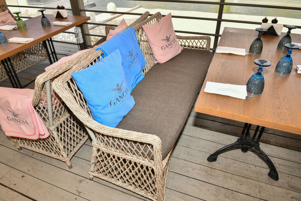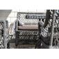 Двухместный диван укомплектован длинной плоской подушкой со съемным чехлом в серо-коричневом оттенке. Он изготовлен из полиэстера с плотностью 230гр/м2. Предусмотрена влагоотталкивающая пропитка ткани, которая защищает текстильное изделие от случайного намокания.
