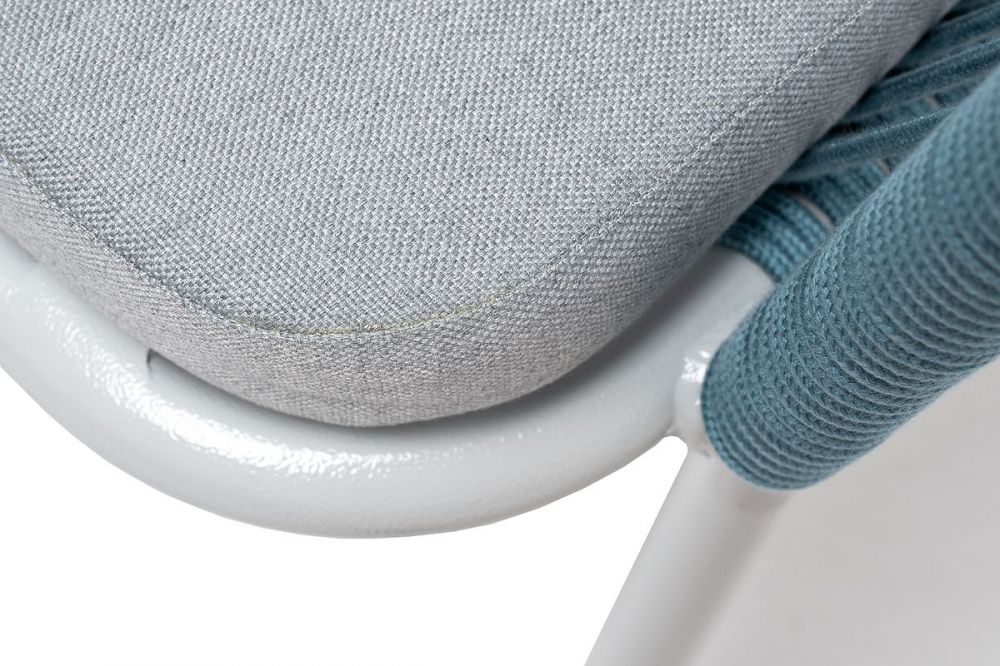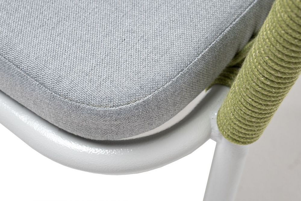Подушка в комплекте со стулом выполнена из полиэстера 100% плотностью 300гр/м2 с влагоотталкивающей пропиткой. Это надежный и прочный материал, который легко очищается и устойчив к неблагоприятным погодным условиям.