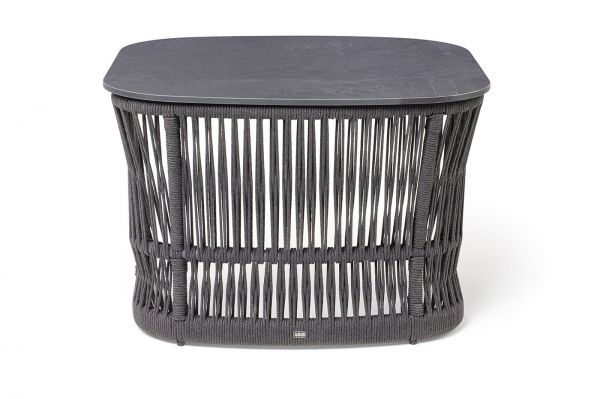 Подстолье - алюминиевая профильная труба, окрашенная износостойкой краской в темно-серый цвет. Нижняя часть задекорирована эластичными синтетическими лентами, состоящими из высокопрочных полиэфирных волокон, аналогичного оттенка.