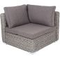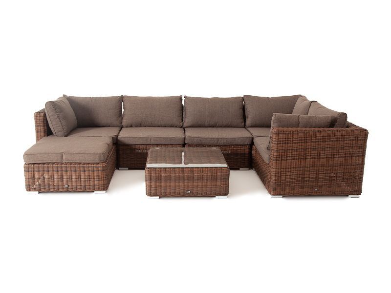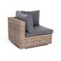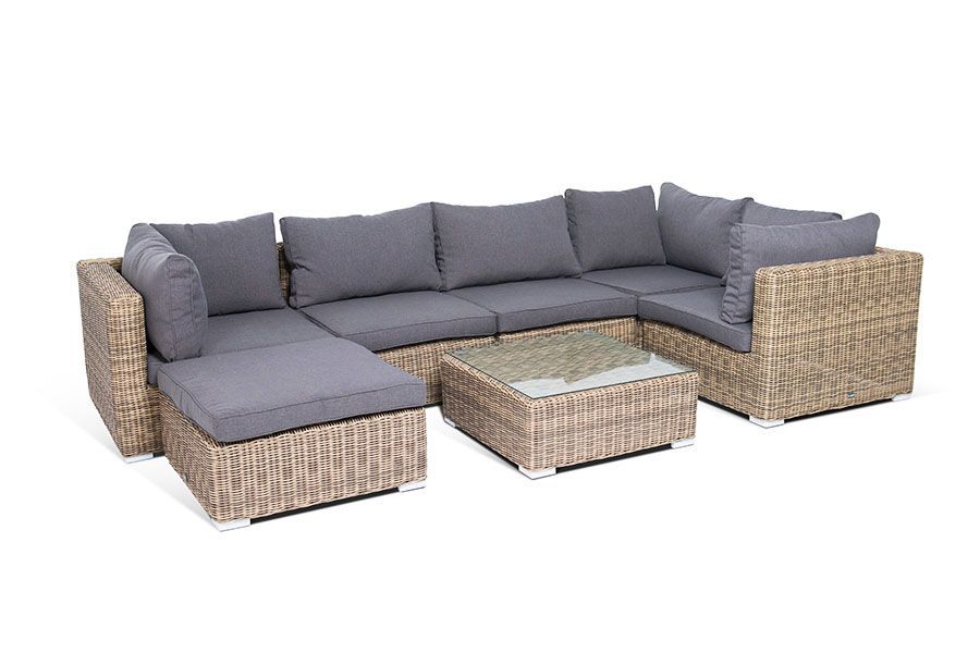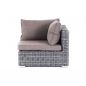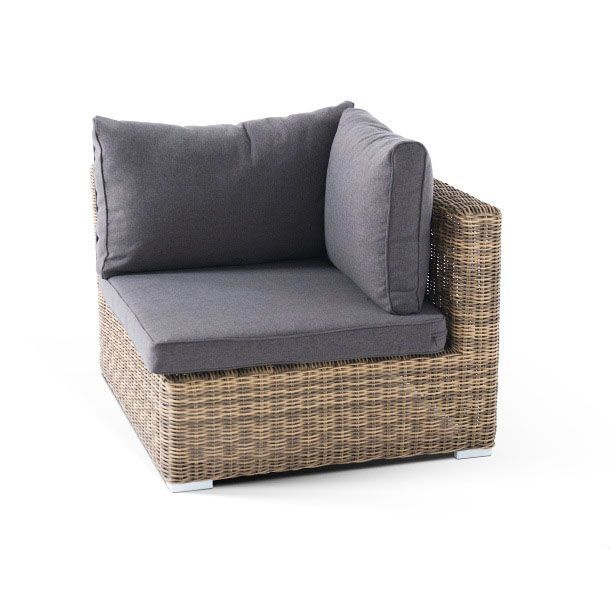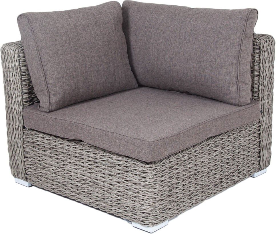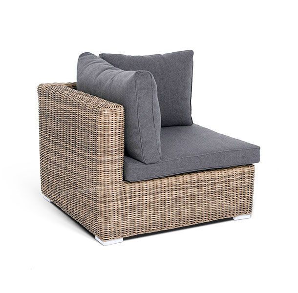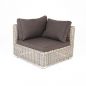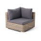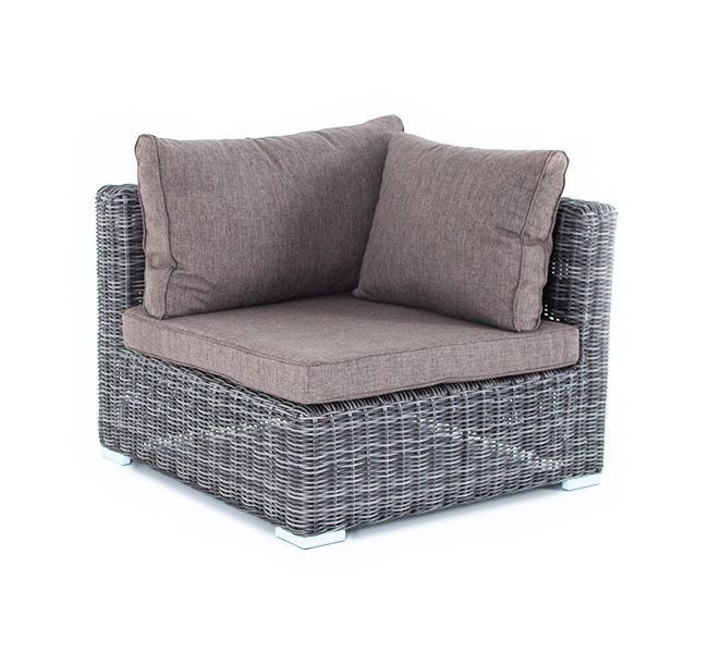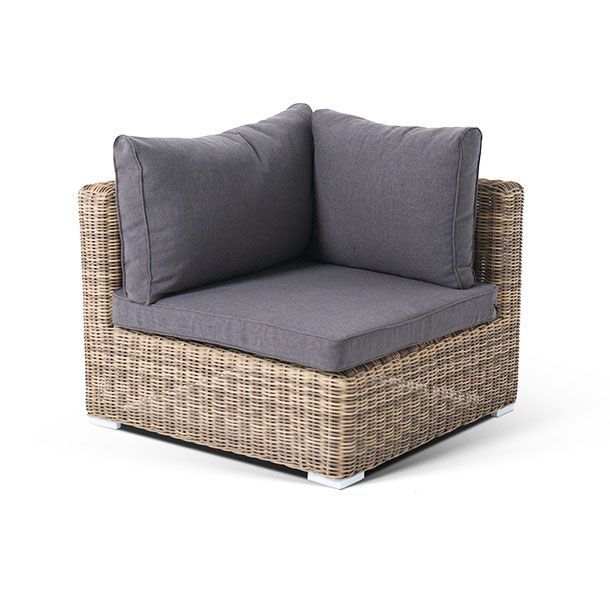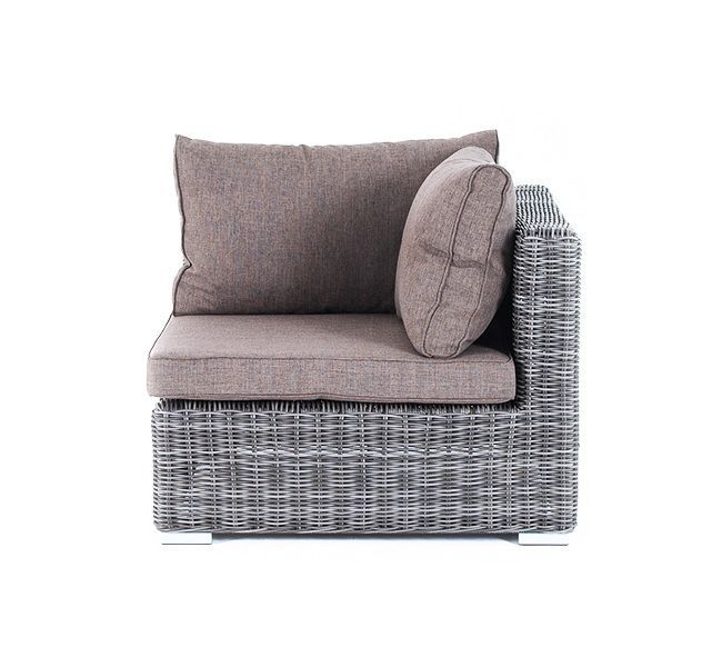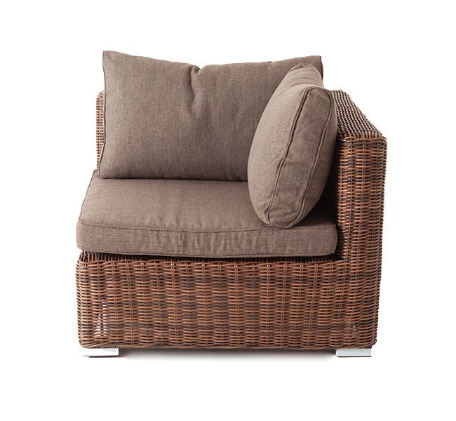 Угловой модуль из круглого искусственного ротанга «Лунго» является одним из звеньев для создания лаунж зоны по индивидуальным потребностям. Основа выполнена из алюминиевого каркаса, декорированного вручную оплеткой. Комплектацией предусмотрены подушки, выполенные из полиэстера с влагоотводящей пропиткой.