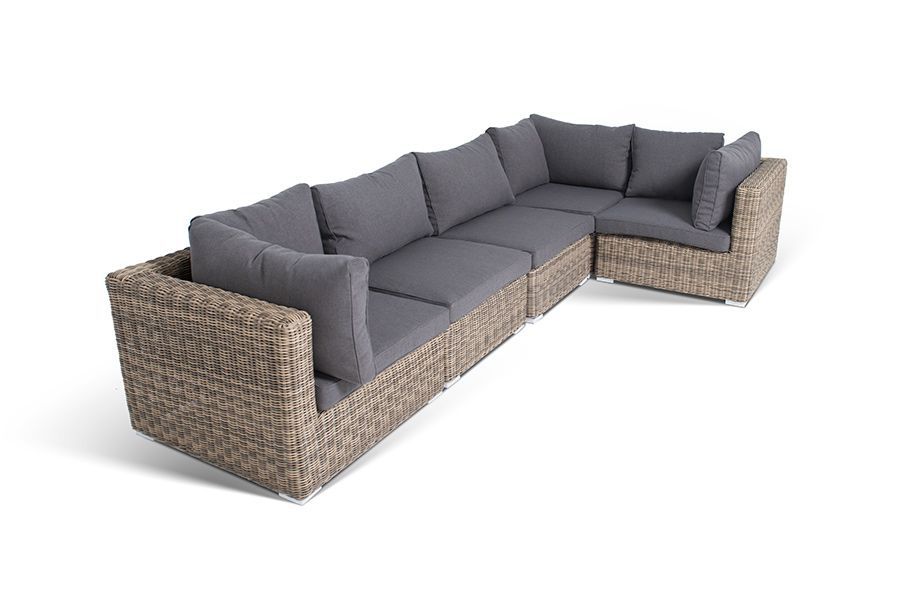 Трансформирующийся диван «Лунго» подходит для одновременного размещения пяти персон. Его каркас выполнен из прочного алюминия.