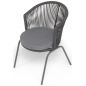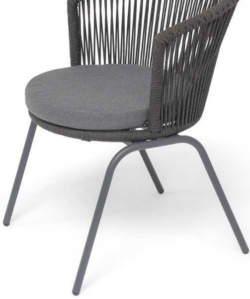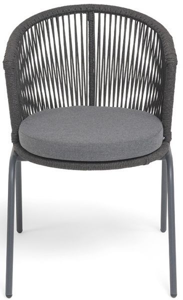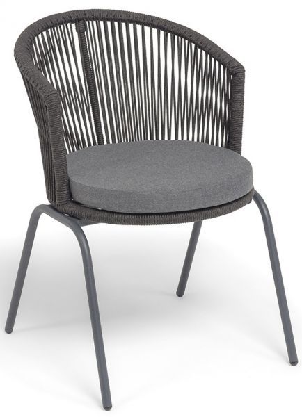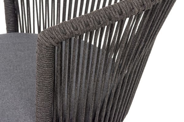 Стул «Люксембург» предназначен для организации обеденной зоны или зону лаунж. Выполнен из стального каркаса, окрашенного в темно-серый (RAL7024) цвет. Оплетка - современный материал «роуп», которым каркас оплетался вручную. Роуп - это эластичные синтетические ленты, изготовленные из высокопрочных полиэфирных волокон. Цвет оплетки - темно-серый. В комплекте одна подушка с влагоотталкивающей пропиткой. Чехол темно-серого цвета съёмный, можно стирать в стиральной машине с использованием порошков.