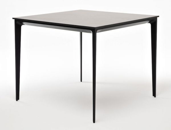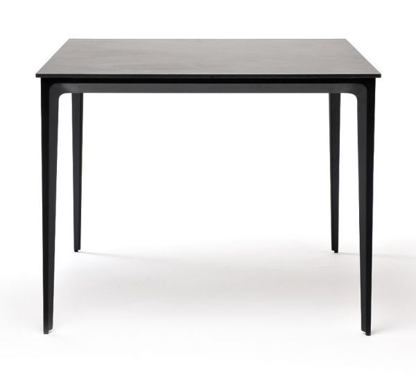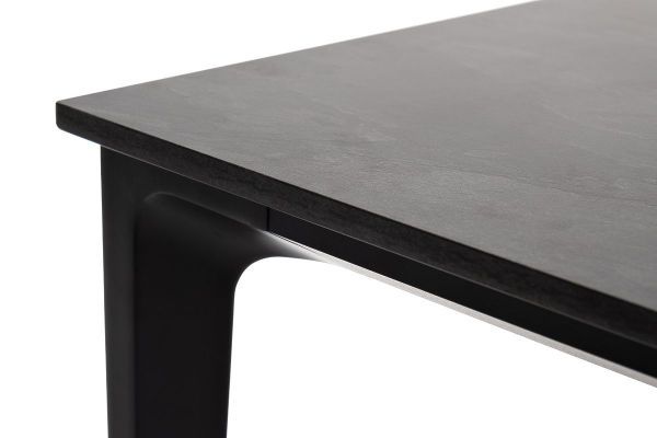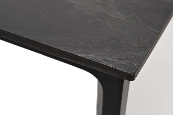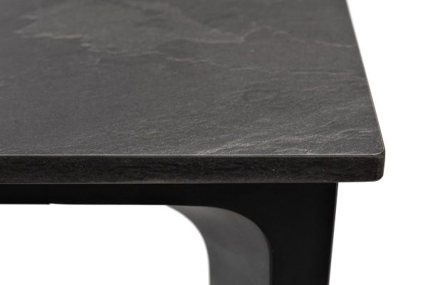 Столешница выполнена из современного высококачественного монолитного компакт-пластик HPL, толщиной 12 мм в цвете "серый гранит". Материал устойчив к высоким температурам, попаданию влаги и может использоваться при любых погодных условиях. Подстолье изготовлено из крашеного алюминия черного цвета.